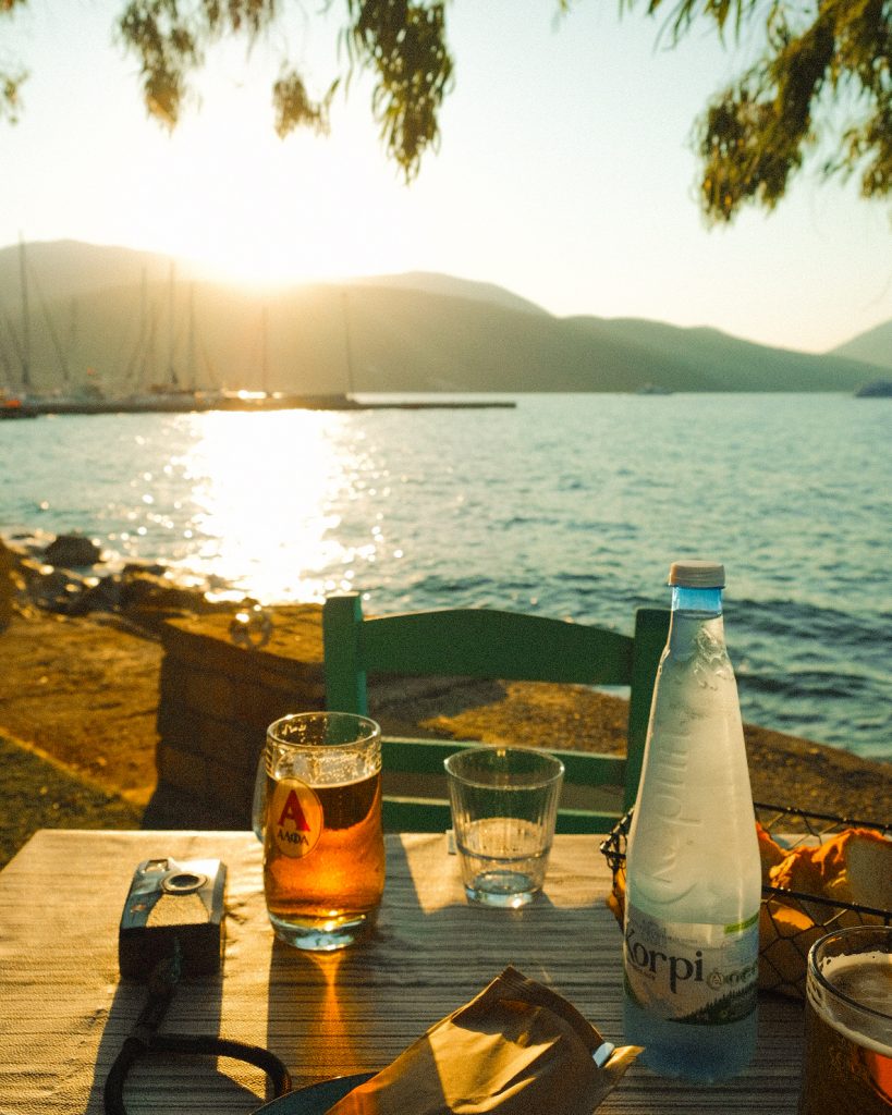 Agia Efimia, a serene coastal haven, comes alive in its own quiet way as the day winds down. As the sun dips and the air cools, locals take to the rocky outcrops for their banio—a ritual evening swim, the word itself meaning “to bathe.” This is their moment, a time when the crowds have dispersed, and the water shimmers with the soft hues of dusk.