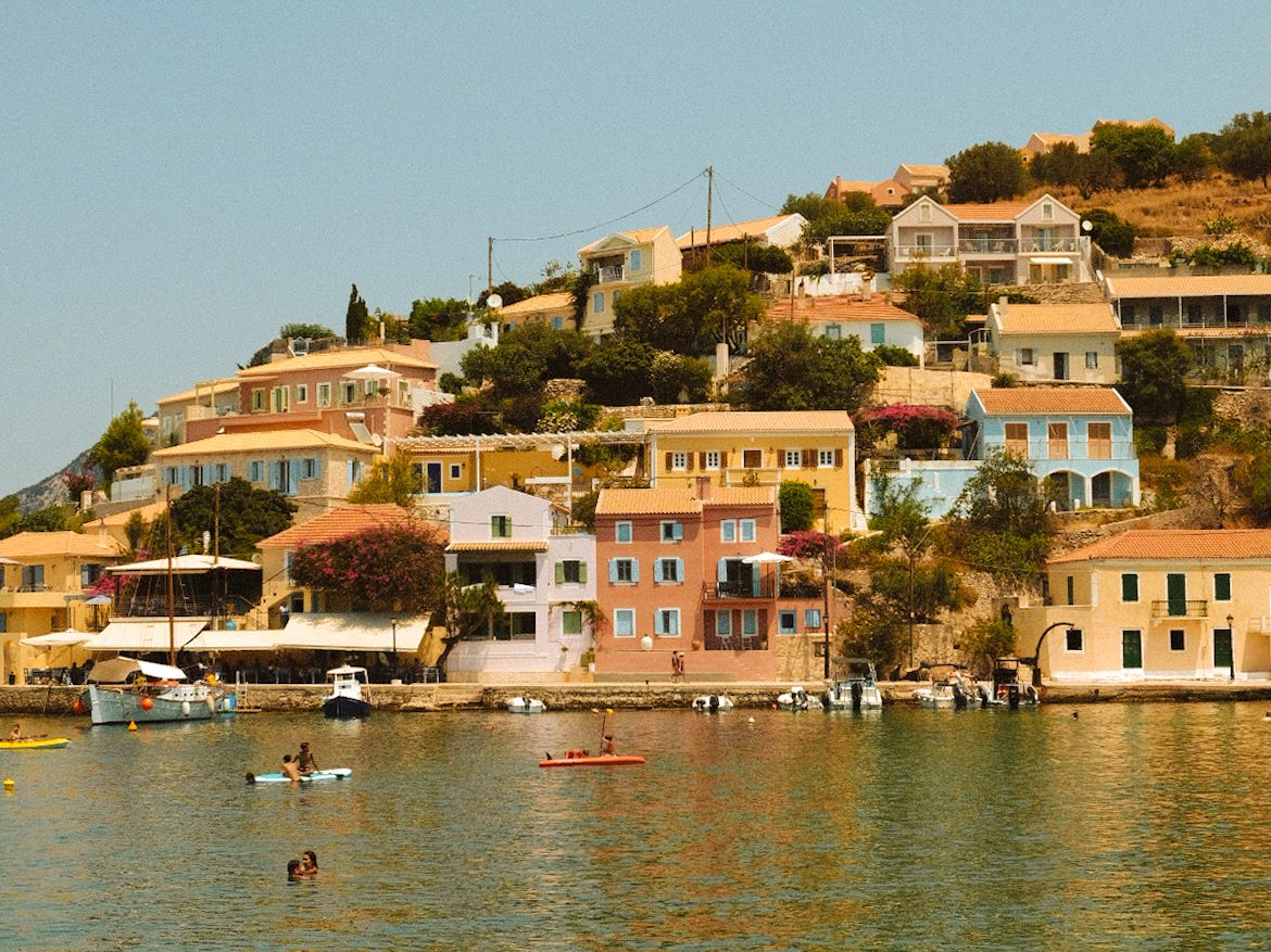 Asos, a small fishing village nestled along Kefalonia’s winding coastal roads, is a place where time seems to slow. The village’s pastel-coloured buildings, including warm peach tones reminiscent of Venetian elegance, hug the shoreline, creating a scene that could have been lifted from a painter’s canvas.